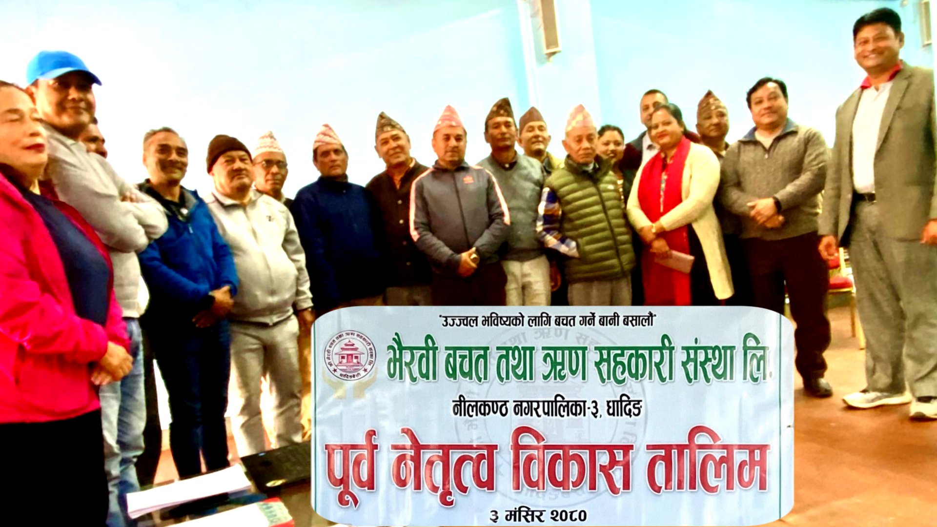 भैरवी वचत तथा ऋण सहकारी संस्था लि. का शेयर सदस्यहरुलाई पुर्व नेतृत्व विकास तालिम संचालन भएको छ । नेफ्सकुनका वरिष्ठ उपाध्यक्ष चन्द्रप्रसाद ढकालको प्रमुख आतिथ्यतामा संचालन भएको उक्त तालिममा ३६ जनाको सहभागिता रहेको छ । प्रमुख अतिथी ढकालले तालिम सहभागिहरुलाई सम्बाोधन गर्दै सहकारी संचालकमा आउन चाहने व्यक्तिले आफ्नो स्वार्थ त्यागेर सामुहिक छलफल र निर्णयलाई स्वीकार गरेर सेवा भावले स्वयम् सेवा गर्नुपर्ने कुरा वताउनु भएको थियो । भैरवी वचत तथा ऋण सहकारी संस्था लि जिल्लामा प्रतिस्ठित सक्षम सस्थाको रुपमा स्थापित भईसकेकोले संस्थालाई थप सेवामुखी वनाउन पुनर्ताजकीकरण गर्ने उद्देश्यले तालिमको आयोजना भएकोले भाेलिका दिनमा वन्ने संचालक समिति पारर्दशिता सुसासनलाई ख्याल गर्ने हुने भएकोले सस्थाको अझ बढी उन्नति प्रगति हुने कुरामा आफु विश्वस्त रहेको भन्दै नेपाल वचत तथा ऋण केन्द्रिय संघ लि ( नेफ्सकुन) को साधारण सभा वोलाईएकोले नेफ्सकुनको गतिविधीलाई ओैल्याउनु पर्ने  र अव वन्ने नया संचालक समितिको अध्यक्षको दावेदार रहेको घोषणा गर्नु भयो ।