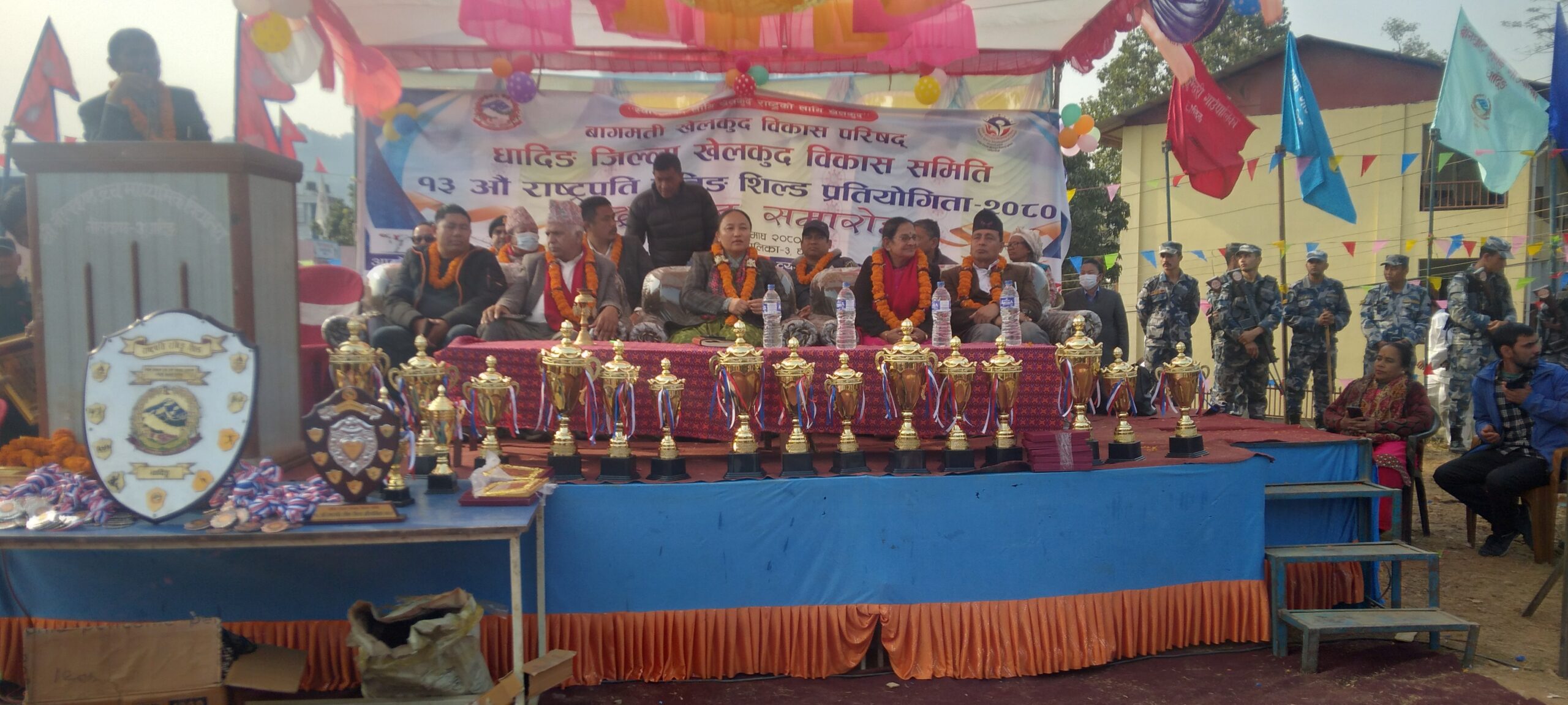 धादिङ जिल्ला स्तरिय १३ औ राष्ट्रपति रनिङशिल्ड खेलकुद प्रतियोगीता आजवाट सुरु भएको छ । धादिङका १३ वटै पालिकाहरुको सहभागीता रहेको कार्यक्रममा वागमती प्रदेशका माननिय सामाजिक बिकास मन्त्री कुमारी मोक्तानको प्रमुख आतिथ्यता तथा जिल्ला खेलकुद बिकास समिति धादिङका अध्यक्ष प्रताप सिंह तामाङको सभापतित्वमा सम्पन्न भएको हो ।