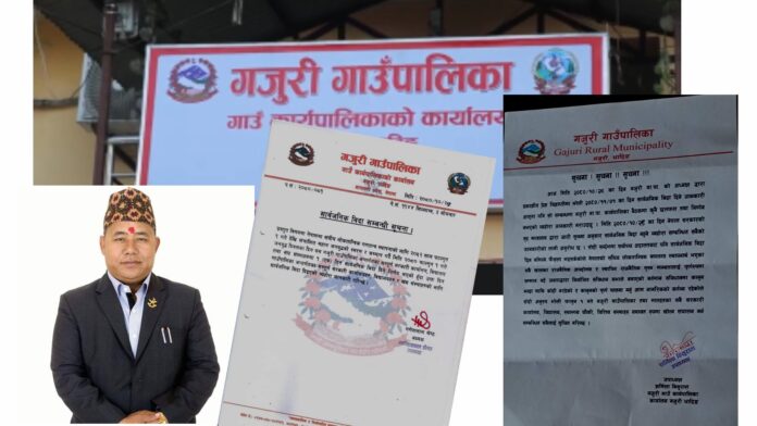 गजुरी गाउपालिका अध्यक्ष गणेशलाल श्रेष्ठ द्वारा हस्ताक्षरित सुचना अनुसार महान जनयुद्धको स्मरण र सम्मान गर्दै फागुन १ गते पालिका भित्रकाे सबै सरकारी कार्यलय बन्द गर्ने भनी सुचना प्रकाशित भएपछि उपाध्यक्ष शर्मिला विसुरालले खण्डन गर्दै बिदा नरहेकाे जनाएकि हुन् । उपाध्यक्ष विसुरालले गाउपालिकाकाे बैठ्कमा कुनै जानकारी र छलफल नै नभएकाे र नेपाल सरकार गृह मन्त्रालयले समेत बिदा नहुने भनी सुचना जारी भएकाे अवस्थामा गजुरी गाउपालिका तथा मातहतका सबै सरकारी कार्यलयहरू खाेली कार्यालय संचालन गर्न भनी सुचना गरेका छन् ।