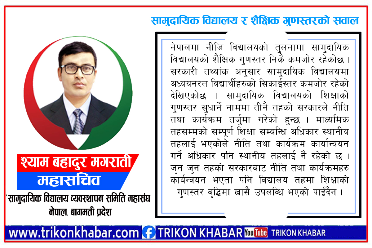 (लेखक: सामुदायिक विद्यालय व्यवस्थापन समिति महासंघ नेपाल, बागमती प्रदेशका महासचिव हुनुहुन्छ ।)