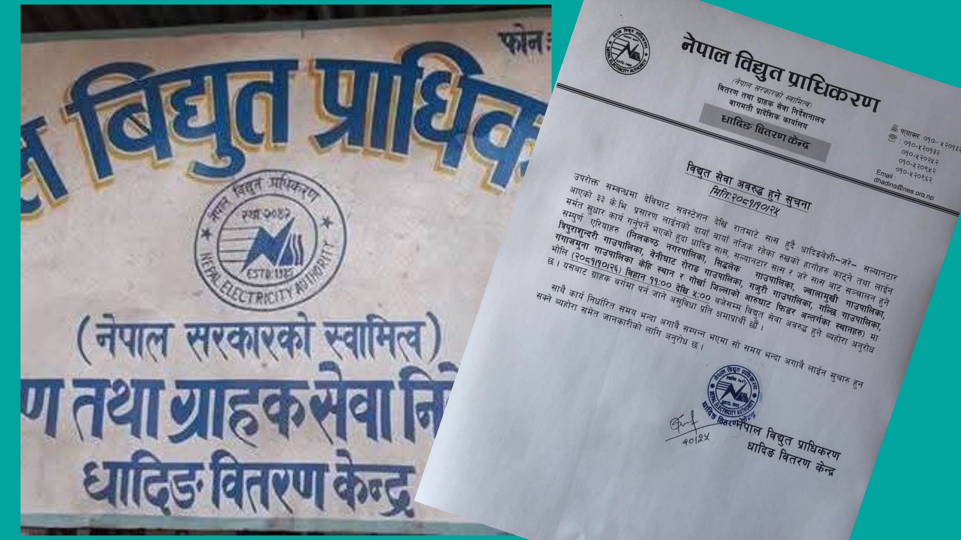 नेपाल विद्युत प्राधिकरण धादिङले विद्युत सेवा अवरुद्ध हुने समयमा ग्राहकवर्गलाई भएको असुविधाप्रति क्षमाप्रार्थी रहेको जनाएको छ। साथै, यदि निर्धारित समय भन्दा अगावै कार्य सम्पन्न भएमा विद्युत सेवा समयभन्दा अघि पुनः सुचारु हुने जानकारी दिएको छ।