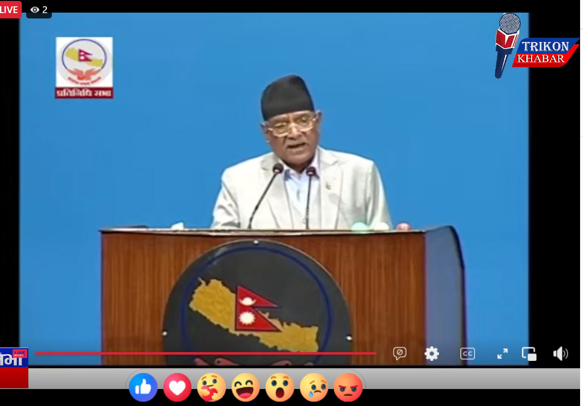 नेकपा माओवादी केन्द्रका अध्यक्ष पुष्पकमल दाहाल प्रचण्डले प्रतिनिधिसभा बैठकमा सम्बोधन गरिरहेका छन् ।
