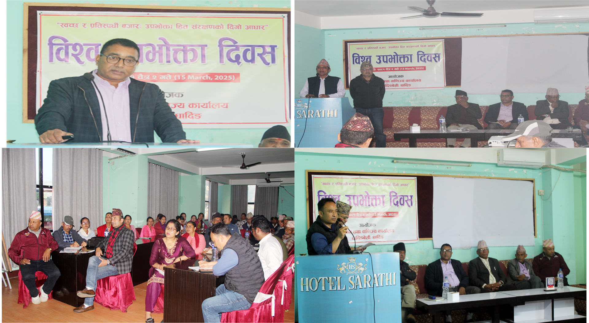 धादिङ । विश्व उपभोक्ता अधिकार दिवस देशभर उपभोक्ता हितसँग सम्बन्धित विभिन्न कार्यक्रम गरl मनाइएको छ । विश्व उपभोक्ता अधिकार दिवसको अवसरमा छलफल, अन्तरक्रिया कार्यक्रमको आयोजना गरी धादिङबेसीमा पनि उपभोक्ता दिवस मनाईएको छ ।