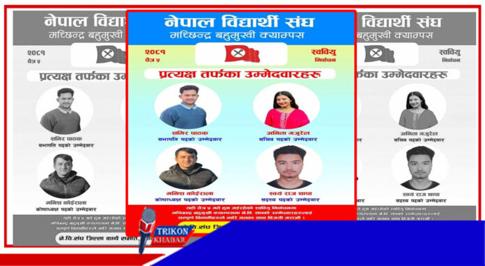 धादिङ । धादिङको मच्छिन्द्र बहुमुखी क्याम्पस, खानीखोलामा सम्पन्न स्ववियु निर्वाचनमा नेपाल विद्धार्थी संघका समिर पाठक सभापतिमा निर्वाचित भएका छन । स्वतन्त्र विद्धार्थी युनियन स्ववियुको आज सम्पन्न निर्वाचनमा नेविसंघको तर्फबाट उम्मेदवारी दिएका पाठक जित हासिल गरेको हो।