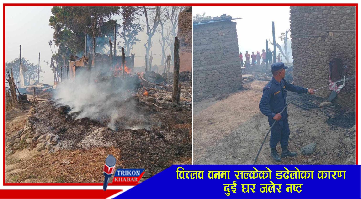 शनिवार दिउसो करिव चार बजेतिर बित्लव सामुदायिक वनमा लागेको आगो गाउँमा पस्दा दुई वटा घर जलेर नस्ट भएको हो ।