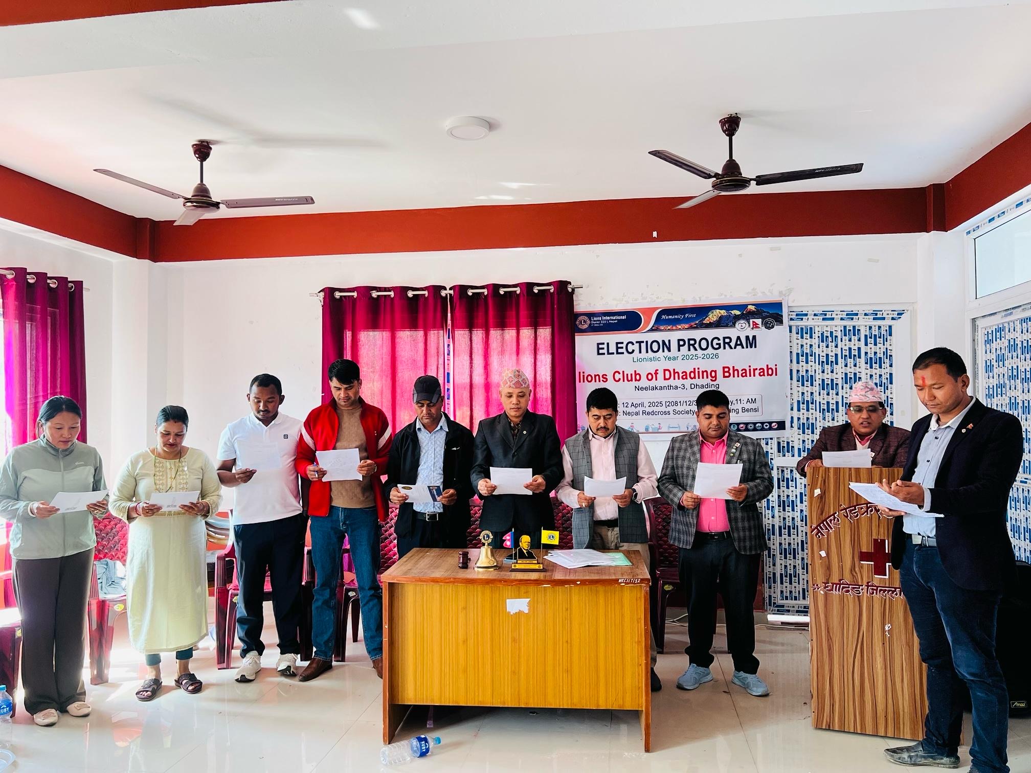 धादिङ :- नेपाल रेड्क्रस सोसाईटीको  हलमा लाईन्स क्लब अफ धादिङ भैरबीका अध्यक्ष कृष्ण बद्री पौडेलको अध्यक्षतामा बैठक बसी भएको कार्यक्रममा लायन वर्ष 2025/026 को लागी लायन बद्री अधिकारी सर्बसहमत  भएको छ ।