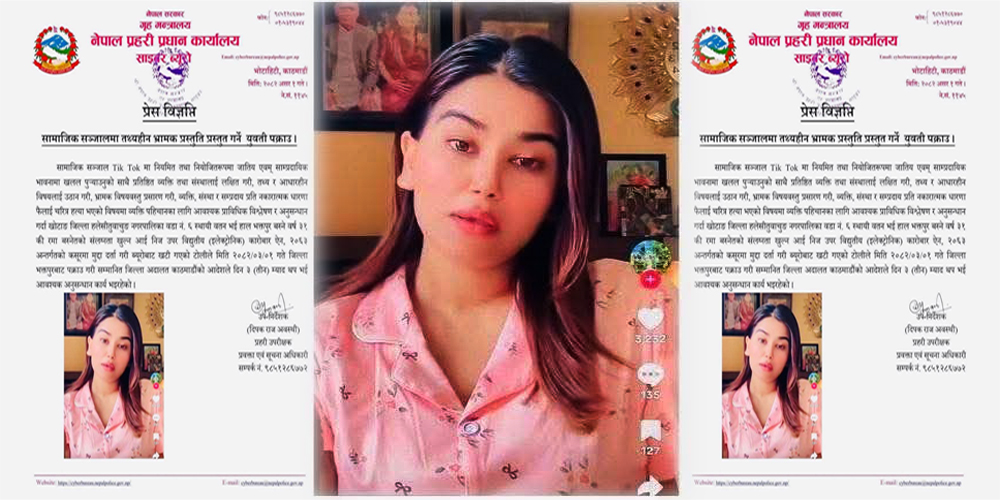 सामाजिक सञ्जाल TikTok मा नियोजित र दोहोरिएको रूपमा जातीय तथा साम्प्रदायिक सद्भावमा खलल पुर्याउने, प्रतिष्ठित व्यक्ति तथा संस्थालाई लक्षित गरी तथ्यहीन र भ्रामक सामग्री प्रसारण गर्ने एक युवतीलाई प्रहरीले पक्राउ गरेको छ।