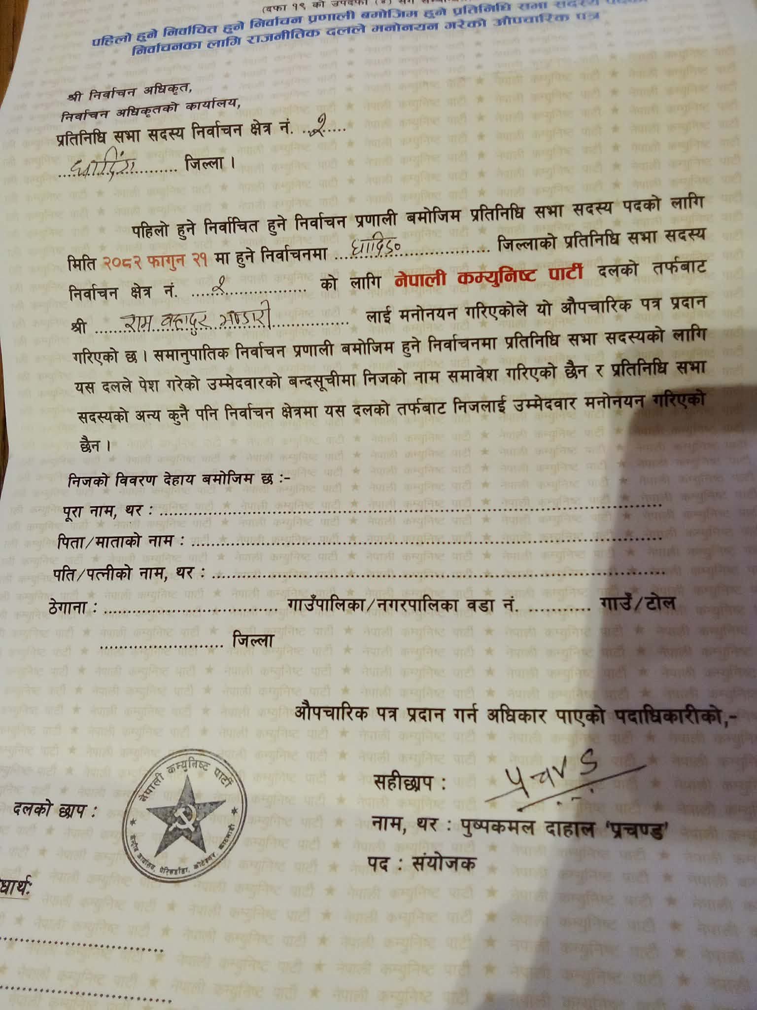 नेपाली कम्युनिष्ट पार्टीले धादिङ संघीय निर्वाचन क्षेत्र नम्बर २ का लागि पार्टी केन्द्रीय सदस्य रामबहादुर भण्डारीलाई उम्मेदवारको रूपमा टिकट प्रदान गरेको छ। जनयुद्धका जिउँदा सहिदका रूपमा परिचित भण्डारीको त्याग, बलिदान र समर्पणको उच्च मूल्याङ्कन गर्दै पार्टीले उहाँलाई उम्मेदवार बनाएको जनाएको छ।
