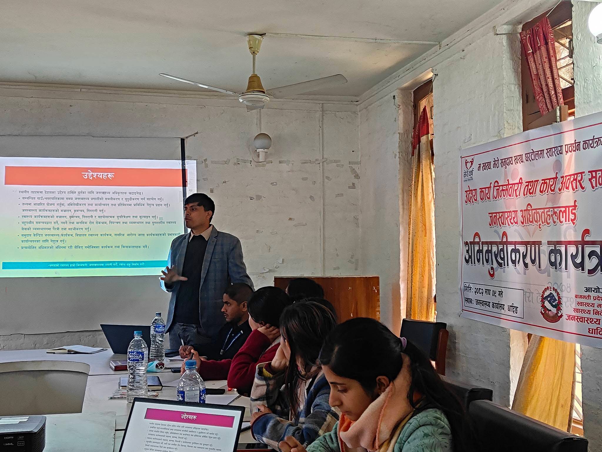 जनस्वास्थ्य कार्यालय प्रमुख अर्जुन पौडेलको अध्यक्षतामा सम्पन्न कार्यक्रममा कार्यक्रमको उद्देश्य, कार्य जिम्मेवारी तथा कार्य अवसरहरूका बारेमा विस्तृत जानकारी गराइएको थियो। घर–घर र टोल–टोलमा पुगेर स्वास्थ्य सचेतना अभिवृद्धि गर्ने, समुदायस्तरमै स्वास्थ्य प्रवर्धनका गतिविधि प्रभावकारी रूपमा सञ्चालन गर्ने विषयमा छलफल गरिएको थियो।