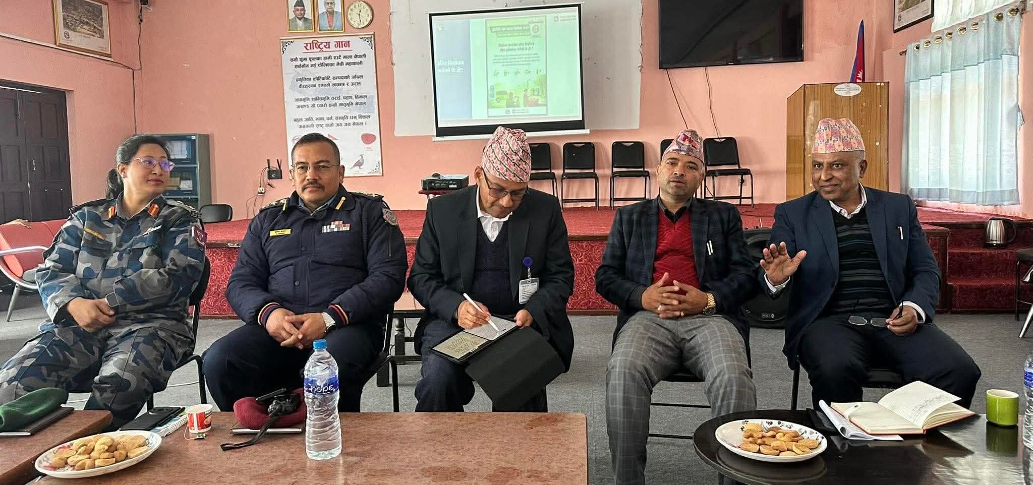 कार्यक्रममा प्रमुख जिल्ला अधिकारी विजयराज सुवेदीले निर्वाचनलाई शान्तिपूर्ण, निष्पक्ष र मर्यादित रूपमा सम्पन्न गर्न जिल्ला प्रशासन, सुरक्षा निकाय र निर्वाचन कार्यालय पूर्ण रूपमा प्रतिबद्ध रहेको बताउनुभयो ।