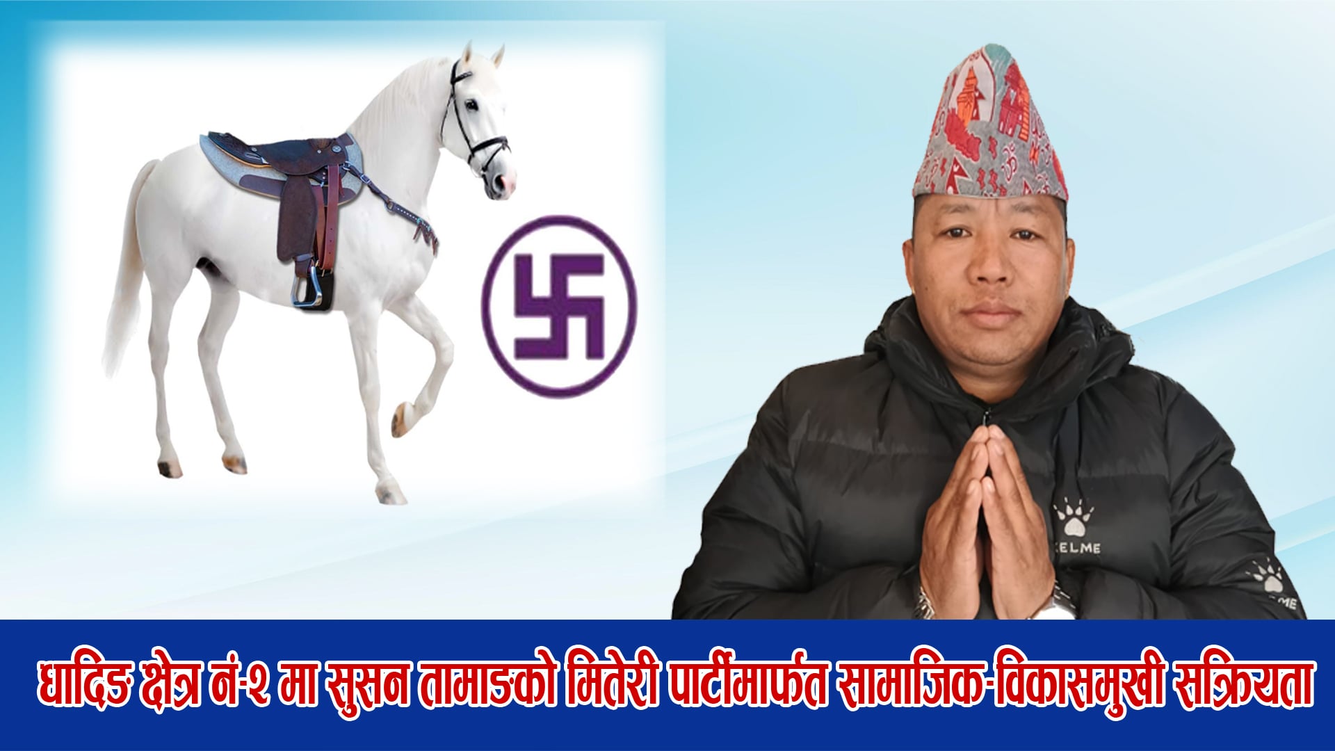 धादिङ — धादिङ प्रतिनिधिसभा निर्वाचन क्षेत्र नं–२ बाट मितेरी पार्टी नेपालका तर्फबाट प्रत्यक्ष उम्मेदवार सुसन तामाङ पछिल्लो समय सामाजिक न्याय, भूकम्पपछिको पुनर्निर्माण, शिक्षा, पूर्वाधार विकास र स्थानीय रोजगारी केन्द्रित कार्यक्रमका कारण चर्चामा रहनुभएको छ। विशेषगरी रुबीभ्याली गाउँपालिका र निलकण्ठ नगरपालिका क्षेत्रमा सञ्चालन गरिएका उहाँका पहलहरूले स्थानीयस्तरमा सकारात्मक प्रभाव पारेको जनाइएको छ।