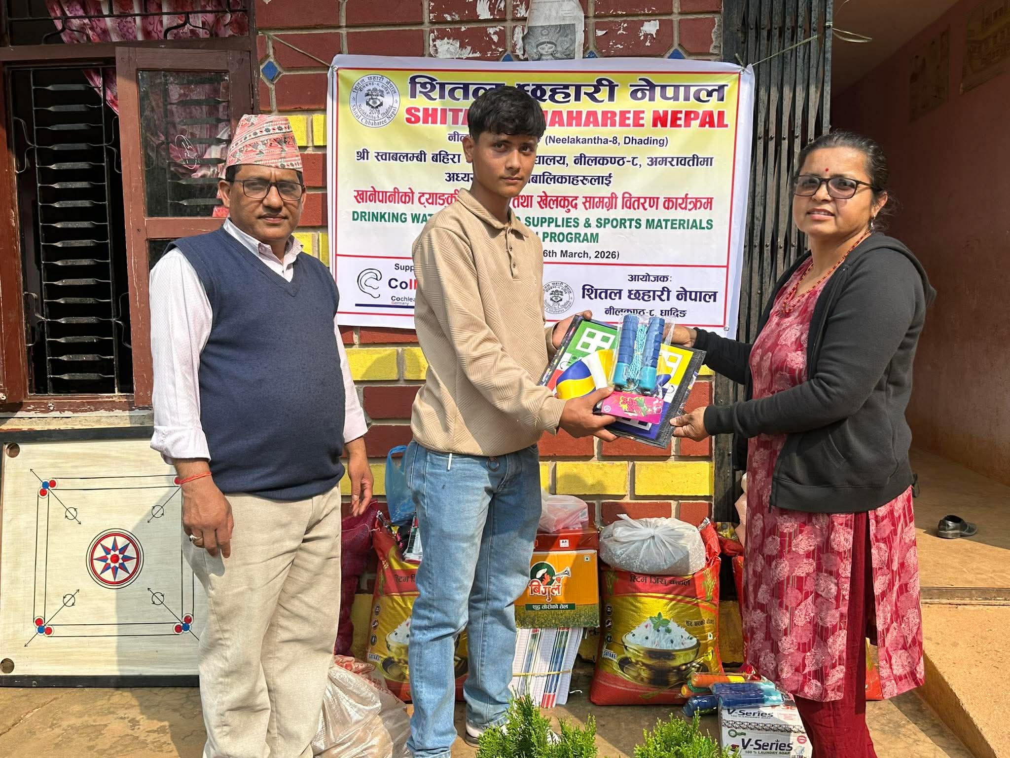 चैते दशैंको अवसर पारेर शितल छहारी नेपालले स्वाबलम्बी बहिरा विद्यालयलाई विभिन्न सहयोग सामग्री हस्तान्तरण गरेको छ। संस्थाले खाद्यान्न, स्टेशनरी, खेलकुद सामग्रीसँगै २/२ हजार लिटर क्षमताका दुई वटा पानी ट्याङ्की (ड्रम) प्रदान गरेको हो।