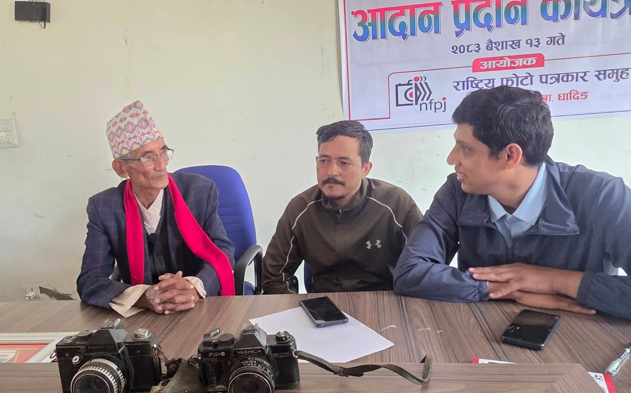 धादिङ, बैशाख १३— ९९औं राष्ट्रिय फोटो पत्रकारिता दिवस २०८३ को अवसरमा फोटो पत्रकार समूह धादिङले जिल्लाका पहिलो फोटोग्राफर महेन्द्र डल्लाकोटीलाई विशेष कार्यक्रमका बीच सम्मान गरेको छ। लामो समयदेखि फोटो पत्रकारितामा सक्रिय रहँदै आएका डल्लाकोटीलाई उनको योगदानको कदर गर्दै सम्मान गरिएको हो।